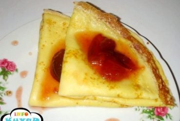 Рецепт приготування млинців я запозичила з книги “Voila! Кулінарна мудрість від Джулії Чайлд “. Вони вийшли дивовижні. А от ідею подачі млинчиків в келиху знайшла в Інтернеті і це дійсно цікавий варіант!
